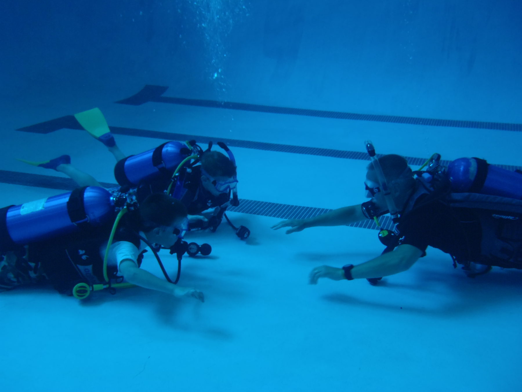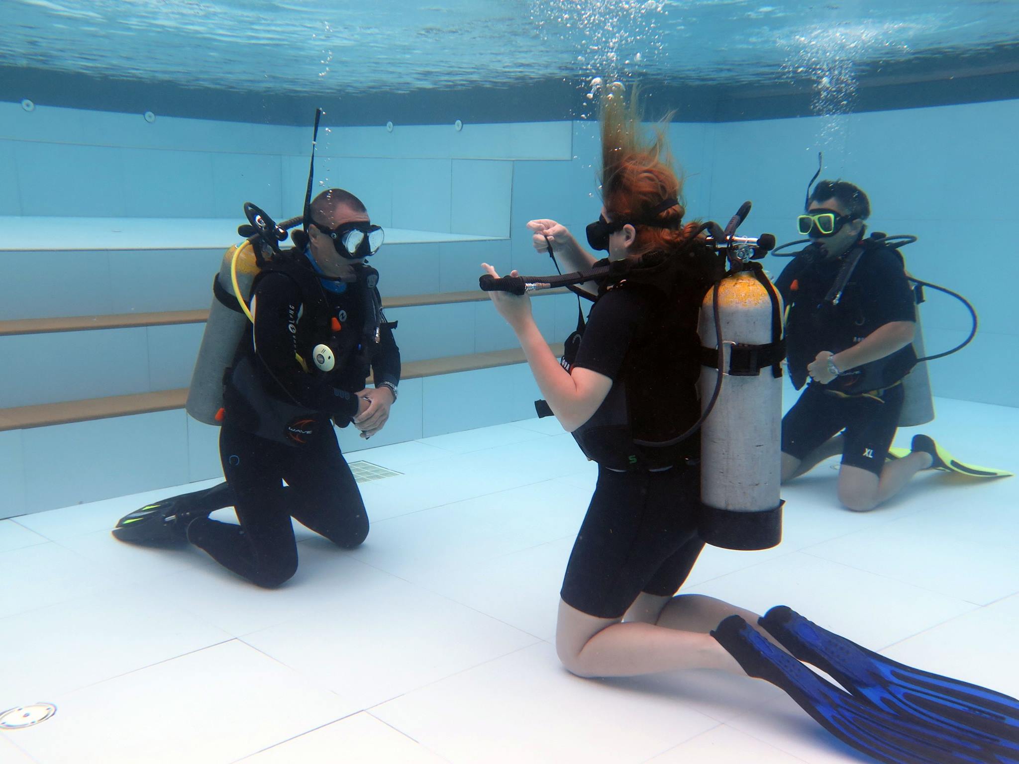 отрабатываются приёмы и схемы поведения под водой. Для профессионалов погружения в бассейне
